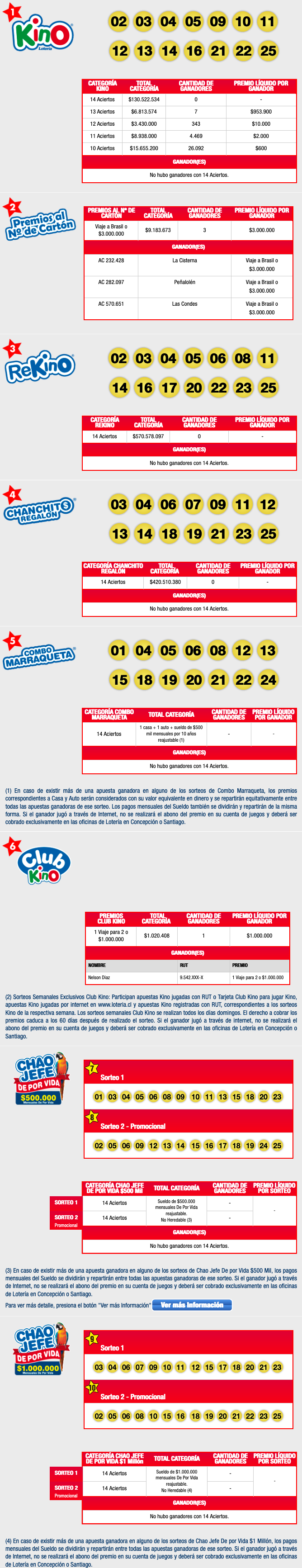 Buenas noches y bienvenidos a nuestro sitio web de Resultados Kino Chile. Les agradecemos su visita y en esta ocasión les traemos los Resultados Kino Sorteo 2255 correspondientes al día Domingo 23 de Febrero del 2020. En la siguiente imagen podrán revisar los resultados completos del juego de Loteria Chile, y sus respectivos ganadores.