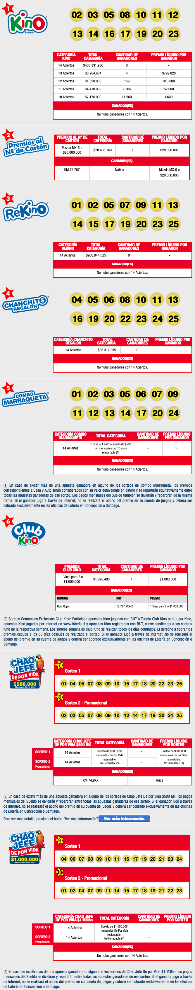 A continuación te traemos los Resultados del Kino del Domingo 22 de Marzo del 2020, que corresponden al Sorteo 2265. Puedes ver los Resultados del Kino, Premios al Número de Cartón, Rekino, Chanchito Regalón, Combo Marraqueta, Club Kino y sorteos Chao Jefe. Esperamos tengas mucha suerte.