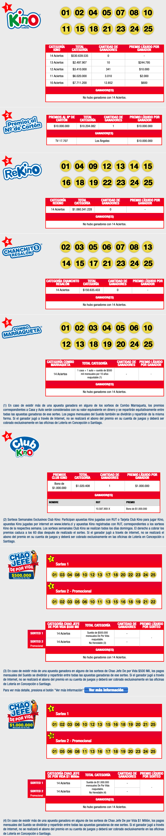 A continuación te traemos los Resultados del Kino del Domingo 12 de Abril del 2020, que corresponden al Sorteo 2274. Puedes ver los Resultados del Kino, Premios al Número de Cartón, Rekino, Chanchito Regalón, Combo Marraqueta, Club Kino y sorteos Chao Jefe. Esperamos tengas mucha suerte.