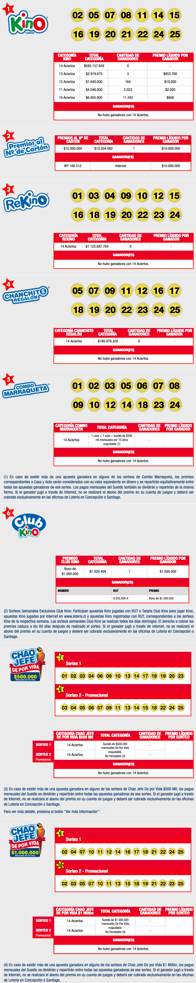 Recuerda que en los resultados Kino, ganas premio con 10, 11, 12 y 13 aciertos y te llevas el pozo millonario con 14 aciertos.