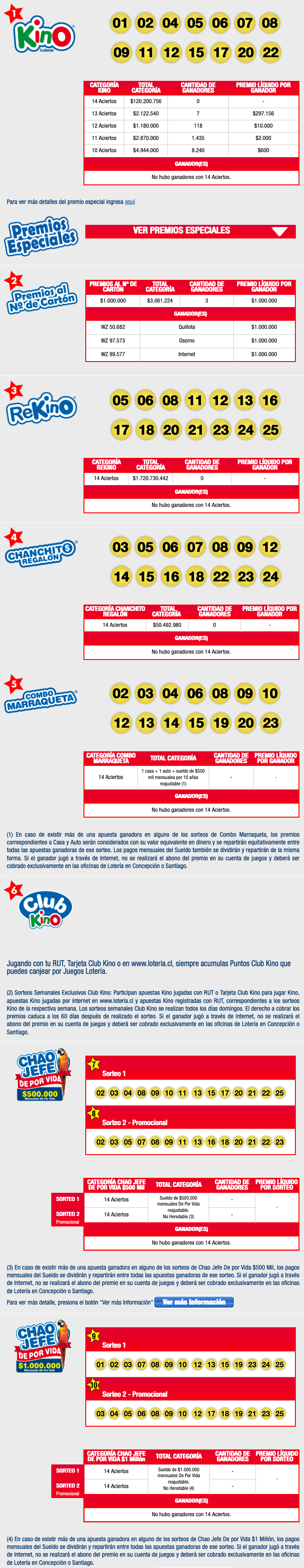 Les deseamos mucha suerte y que nos sigan visitando sorteo a sorteo para conocer los números ganadores del gran juego Kino de Loteria.