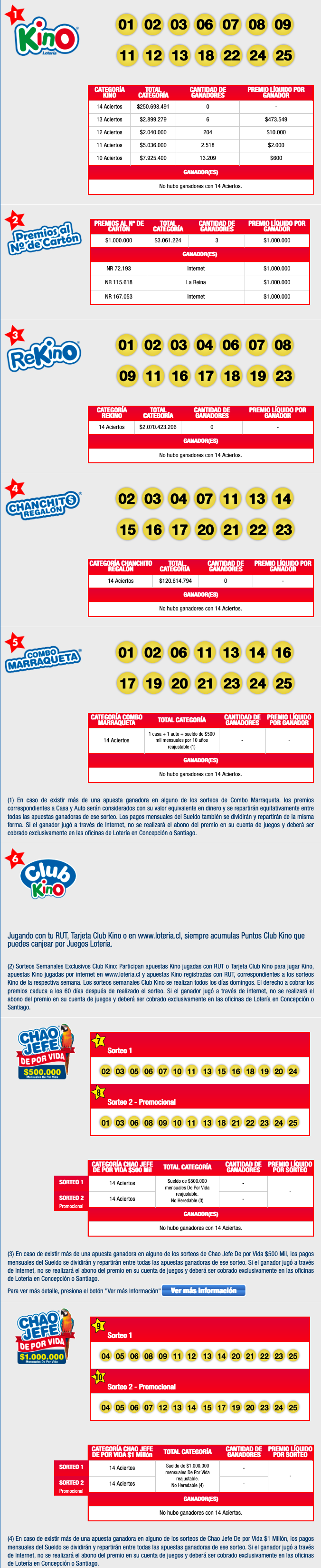 Les deseamos mucha suerte y que nos sigan visitando sorteo a sorteo para conocer los números ganadores del gran juego Kino de Loteria.