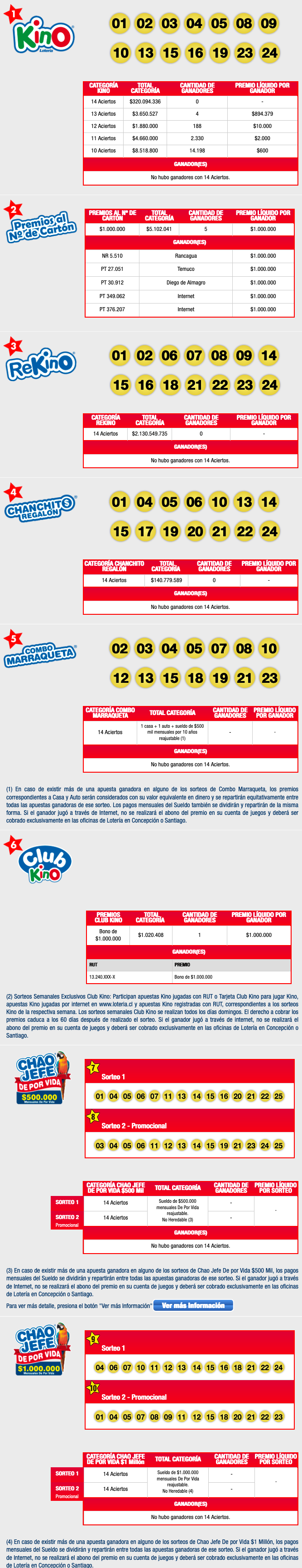 Les deseamos mucha suerte y que nos sigan visitando sorteo a sorteo para conocer los números ganadores del gran juego Kino de Loteria.