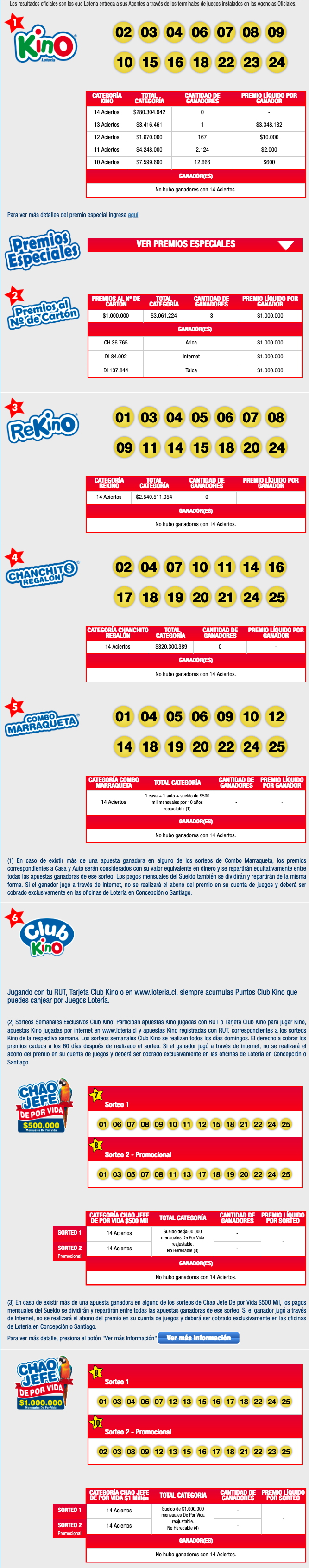 Les deseamos mucha suerte y que nos sigan visitando sorteo a sorteo para conocer los números ganadores del gran juego Kino de Loteria.