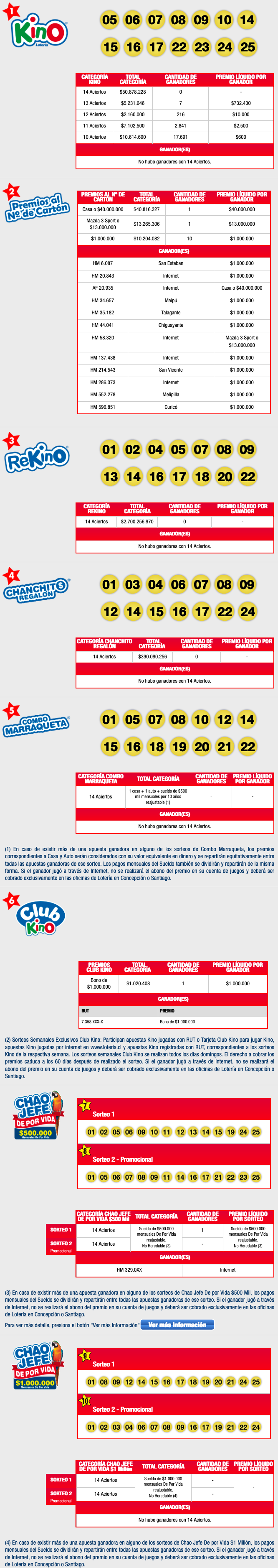 Les deseamos mucha suerte y que nos sigan visitando sorteo a sorteo para conocer los números ganadores del gran juego Kino de Loteria.