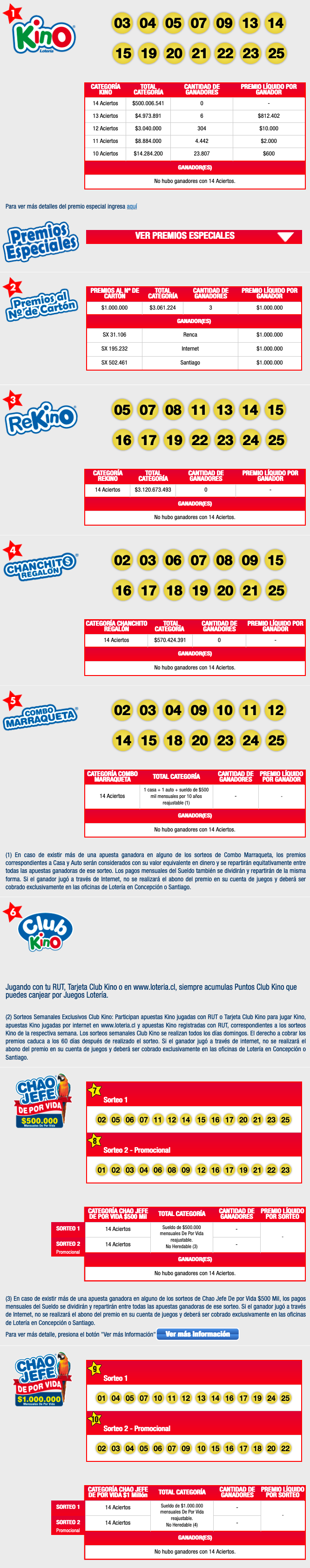 Les deseamos mucha suerte y que nos sigan visitando sorteo a sorteo para conocer los números ganadores del gran juego Kino de Loteria.