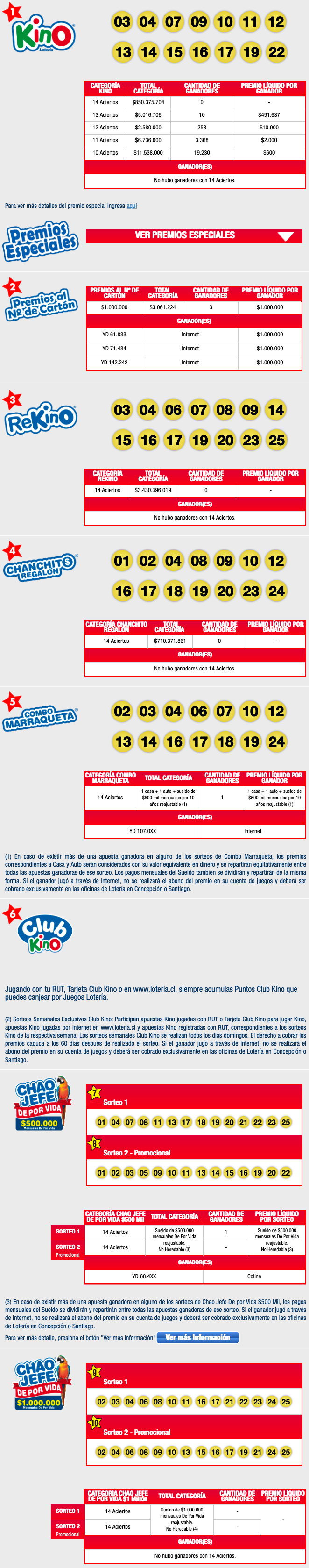 Les deseamos mucha suerte y que nos sigan visitando sorteo a sorteo para conocer los números ganadores del gran juego Kino de Loteria.