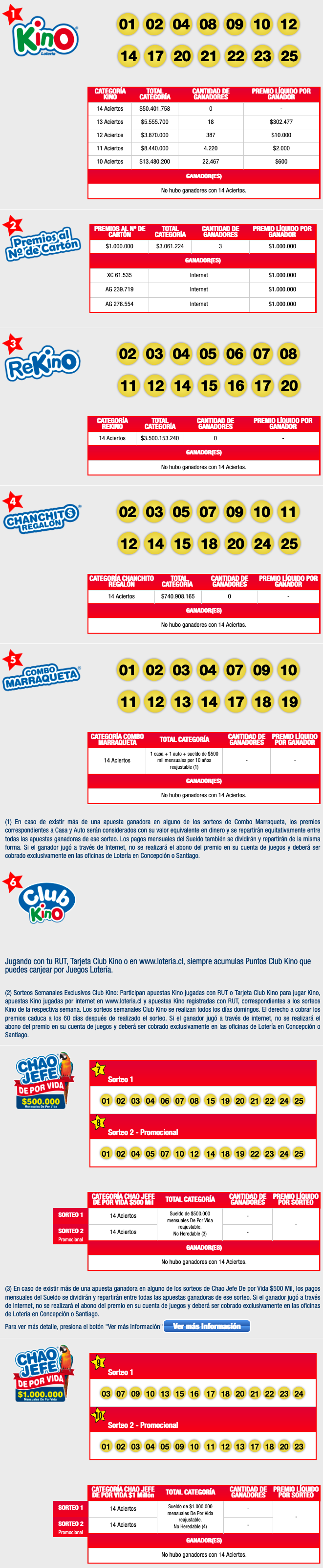 A continuación te traemos los Resultados del Kino del Miércoles 28 de Octubre del 2020, que corresponden al Sorteo 2359. Puedes ver los Resultados del Kino, Premios al Número de Cartón, Rekino, Chanchito Regalón, Combo Marraqueta, Club Kino y sorteos Chao Jefe. Esperamos tengas mucha suerte.