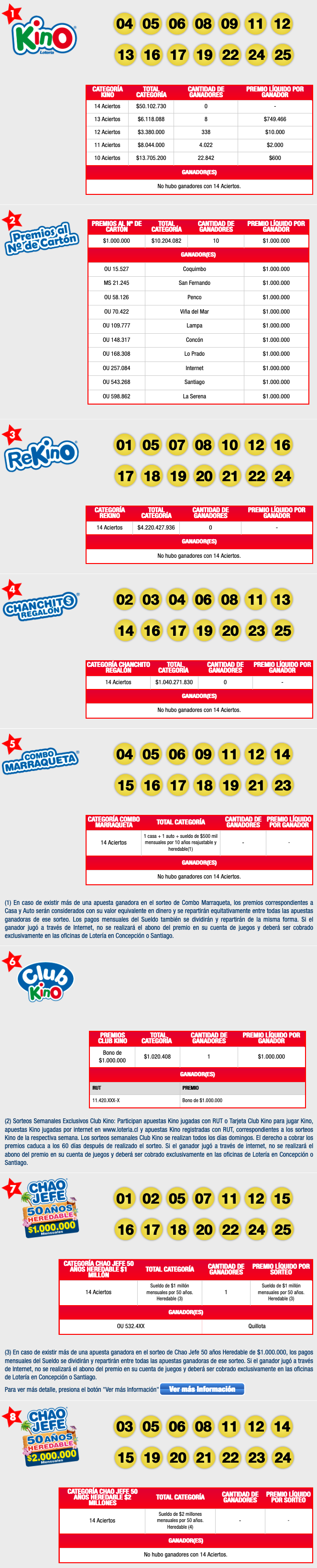 Les deseamos mucha suerte y que nos sigan visitando sorteo a sorteo para conocer los números ganadores del gran juego Kino de Loteria.