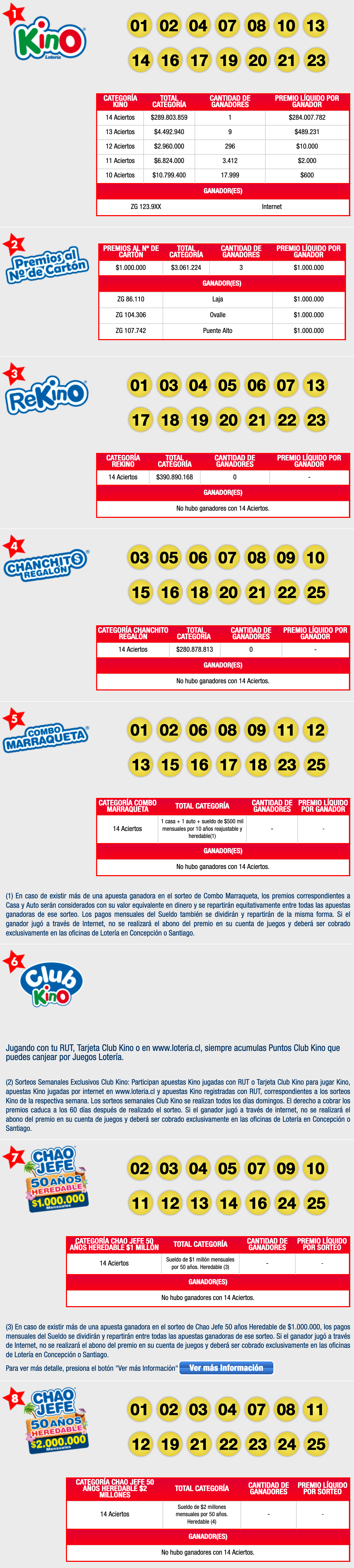Les deseamos mucha suerte y que nos sigan visitando sorteo a sorteo para conocer los números ganadores del gran juego Kino de Loteria.