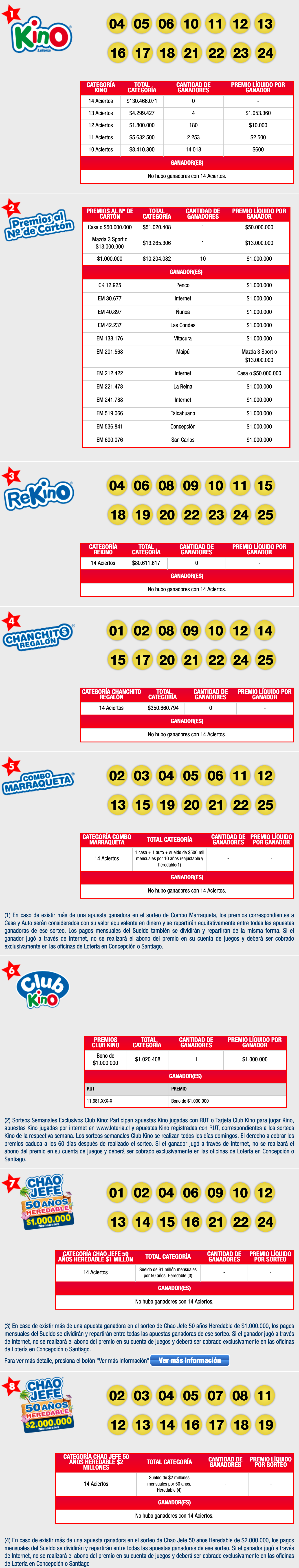 Les deseamos mucha suerte y que nos sigan visitando sorteo a sorteo para conocer los números ganadores del gran juego Kino de Loteria.