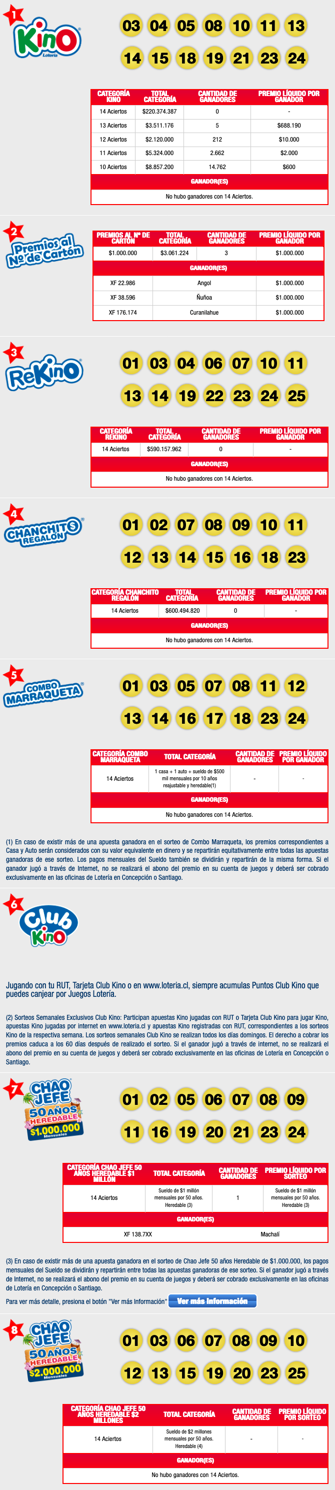 Les deseamos mucha suerte y que nos sigan visitando sorteo a sorteo para conocer los números ganadores del gran juego Kino de Loteria.