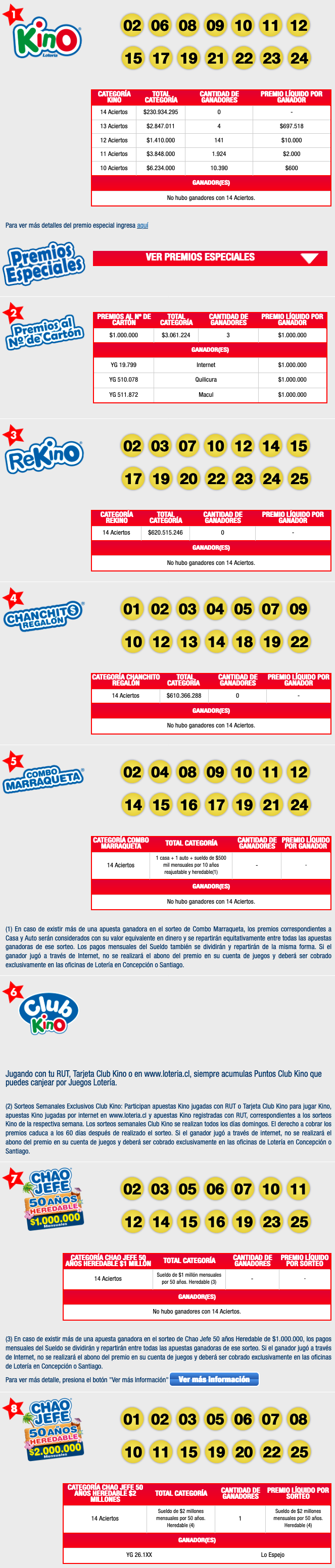 Les deseamos mucha suerte y que nos sigan visitando sorteo a sorteo para conocer los números ganadores del gran juego Kino de Loteria.