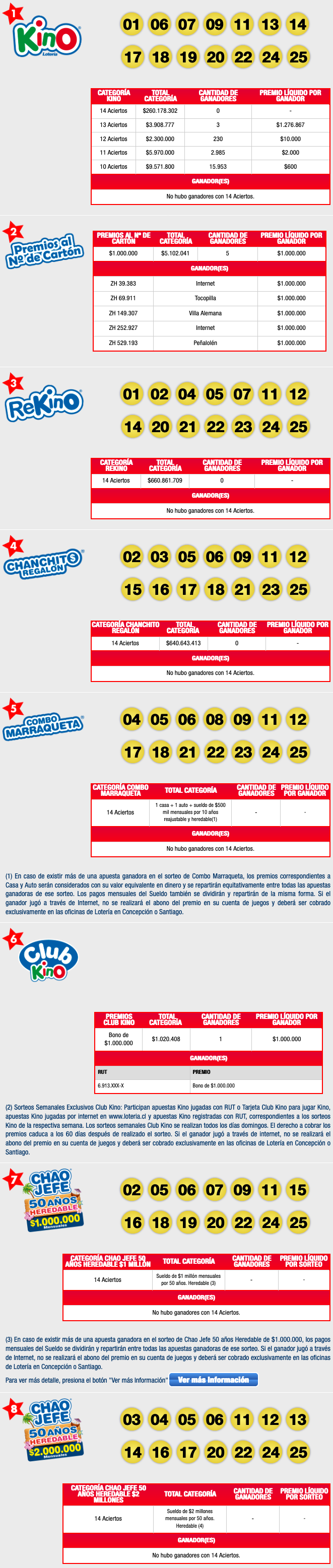 Les deseamos mucha suerte y que nos sigan visitando sorteo a sorteo para conocer los números ganadores del gran juego Kino de Loteria.