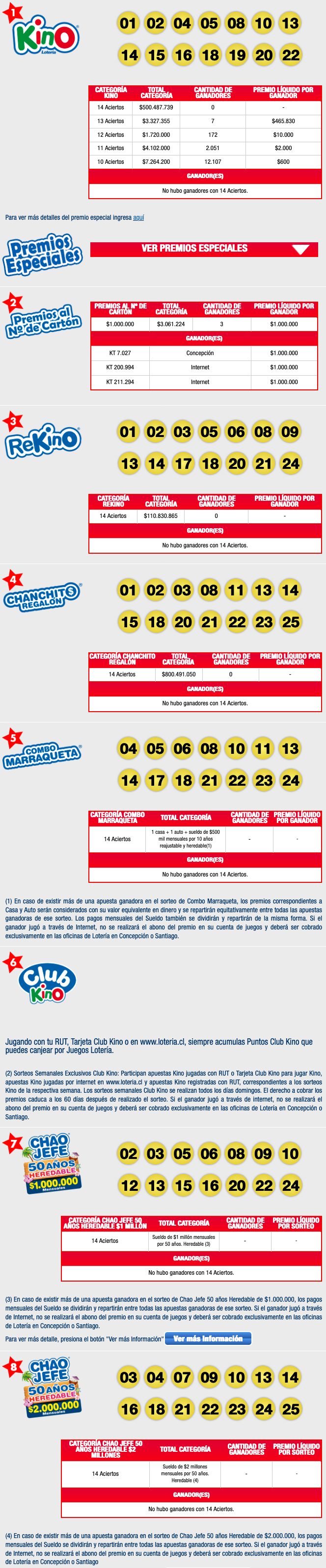 Les deseamos mucha suerte y que nos sigan visitando sorteo a sorteo para conocer los números ganadores del gran juego Kino de Loteria.