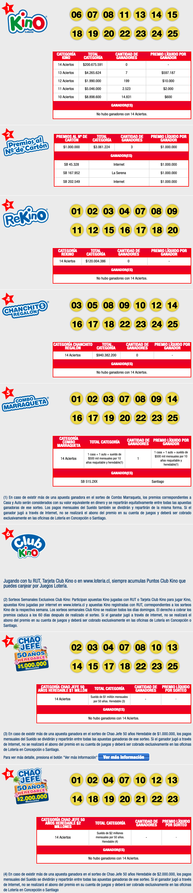 Les deseamos mucha suerte y que nos sigan visitando sorteo a sorteo para conocer los números ganadores del gran juego Kino de Loteria.