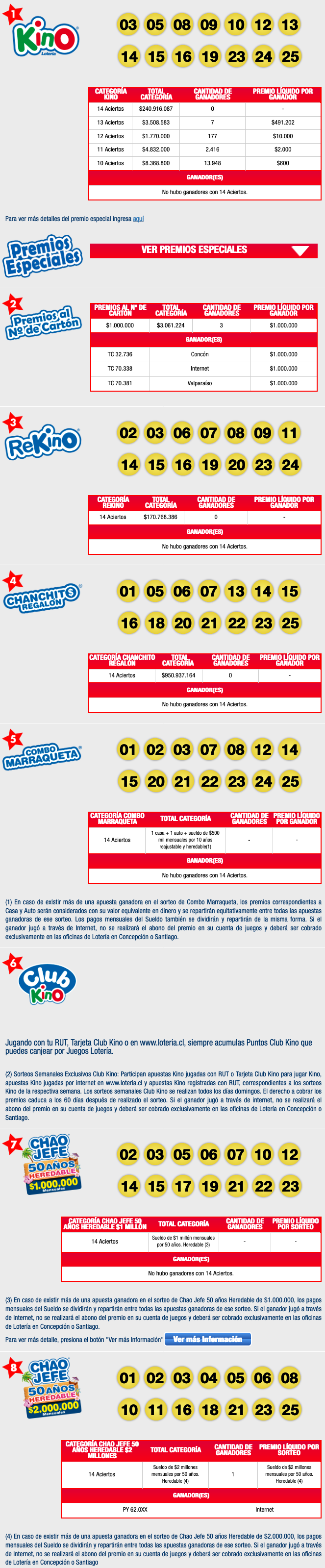 A continuación te traemos los Resultados del Kino del Viernes 11 de Junio del 2021, que corresponden al Sorteo 2456. Puedes ver los Resultados del Kino, Premios al Número de Cartón, Rekino, Chanchito Regalón, Combo Marraqueta, Club Kino y sorteos Chao Jefe. Esperamos tengas mucha suerte.