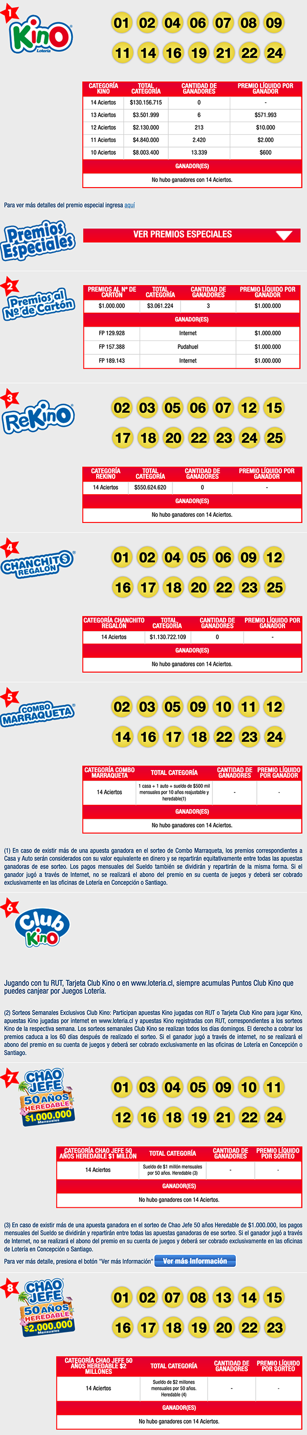Les deseamos mucha suerte y que nos sigan visitando sorteo a sorteo para conocer los números ganadores del gran juego Kino de Loteria.