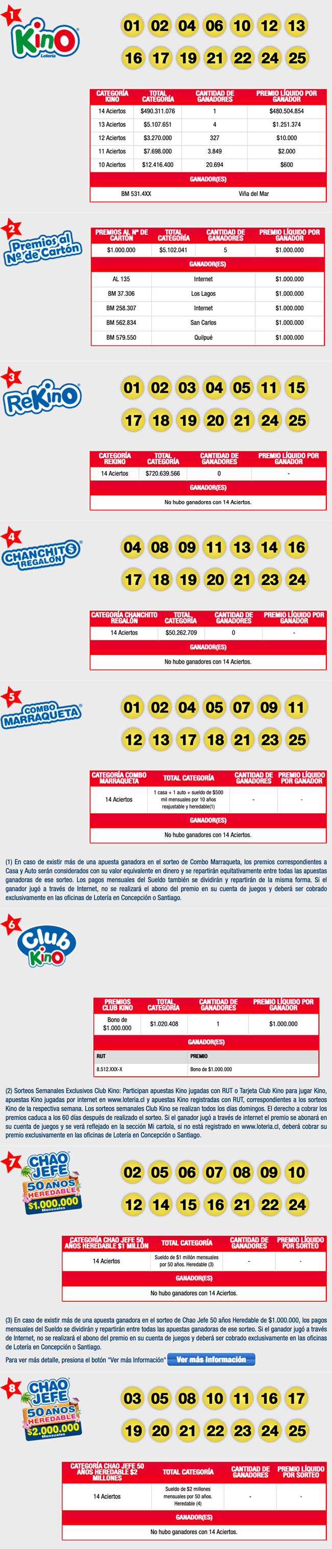 Resultados Kino Sorteo 2490