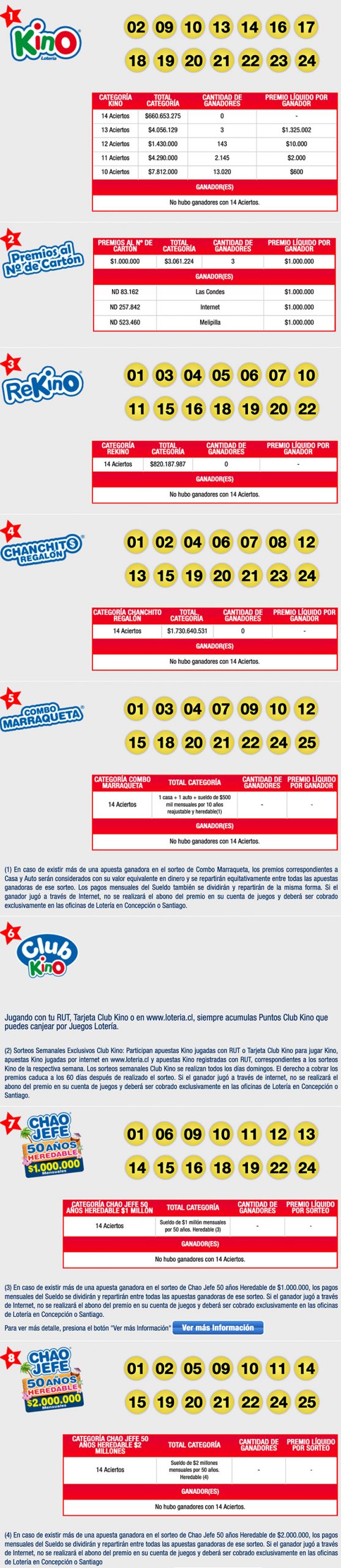 En la siguiente imagen podrá revisar los resultados completos del juego de Loteria Chile, y sus respectivos ganadores.