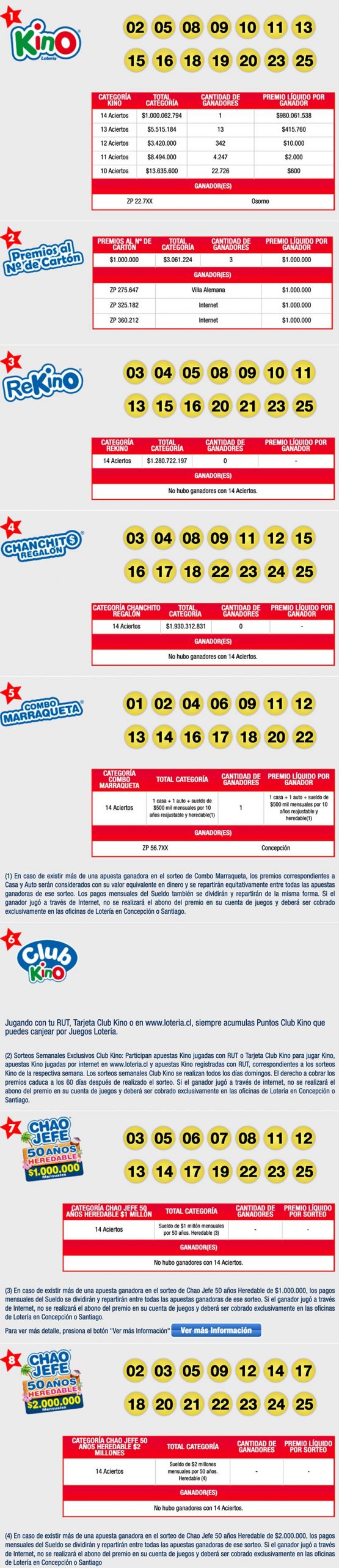 En la siguiente imagen podrá revisar los resultados completos del juego de Loteria Chile, y sus respectivos ganadores.