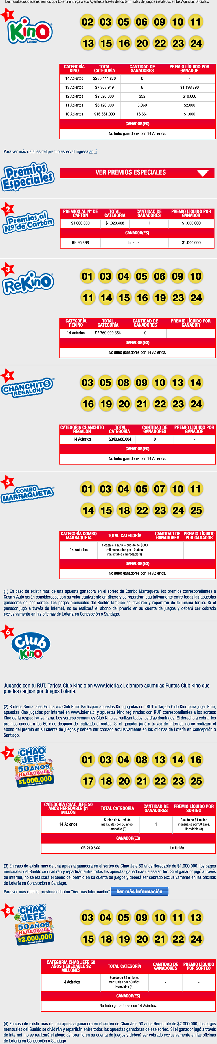 Les deseamos mucha suerte y que nos sigan visitando sorteo a sorteo para conocer los números ganadores del gran juego Kino de Loteria.